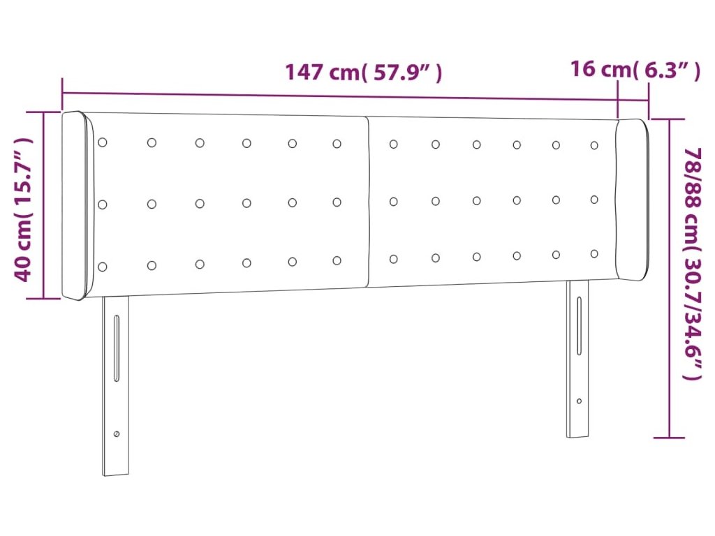 Čelo postele s LED 147 x 16 x 78/88 cm textil [3123669]