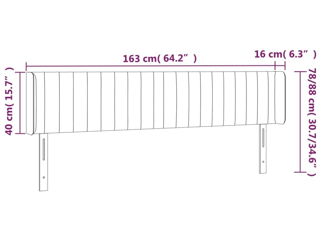 Čelo postele s LED 163 x 16 x 78/88 cm textil [3123482]