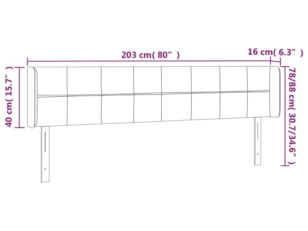 Čelo postele s LED 203 x 16 x 78/88 cm textil [3123262]