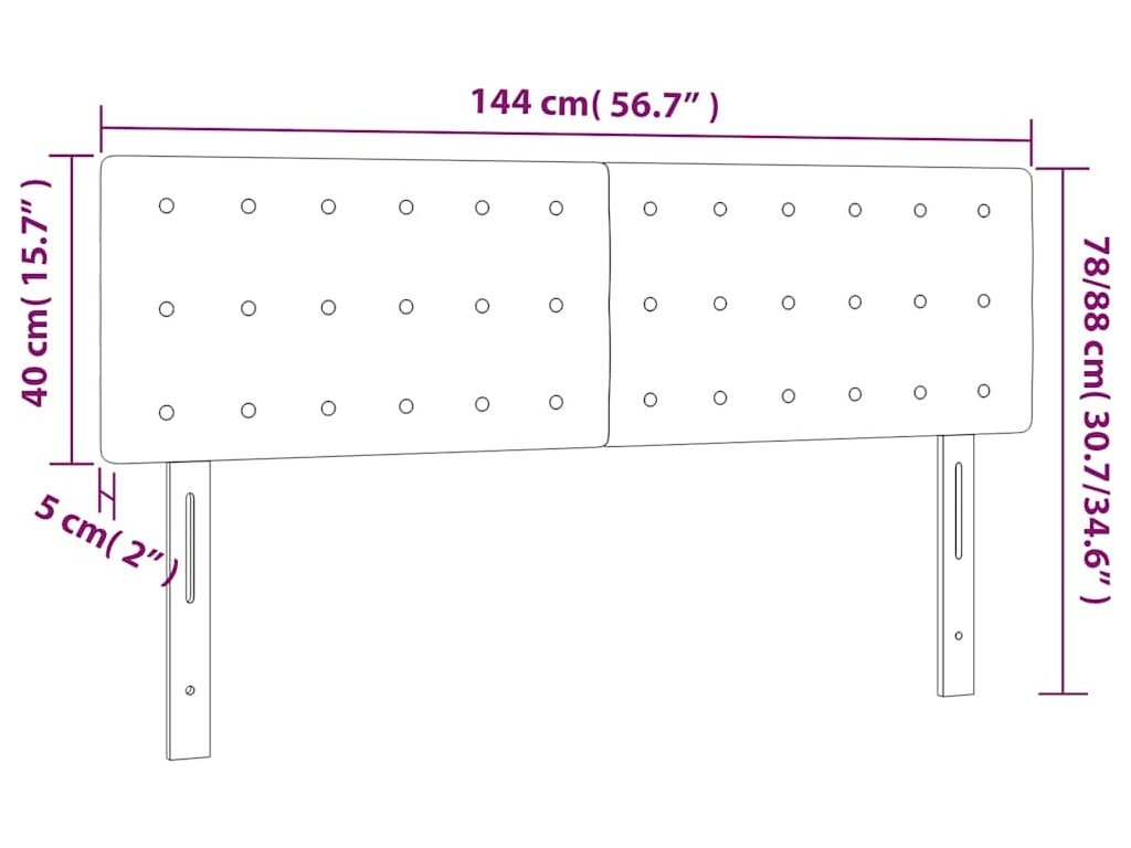 Čelo postele s LED 144x5x78/88 cm samet [3122099]