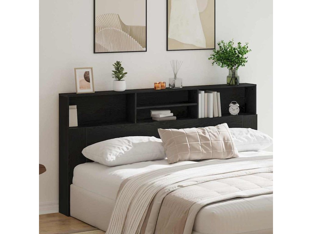 Čelo postele se skříňkou s policí Černý dub 200 x 19 x 103,5 cm [862755]