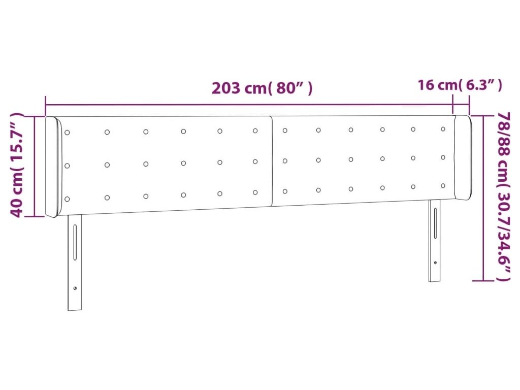 Čelo postele typu ušák 203x16x78/88 cm samet [3119269]