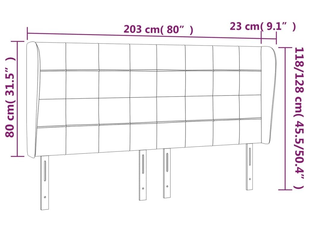 Čelo postele typu ušák 203x23x118/128 cm textil [3117980]