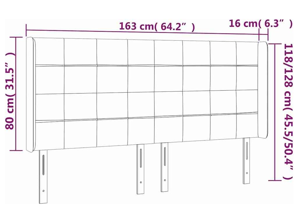 Čelo postele typu ušák 163x16x118/128 cm samet [3119636]