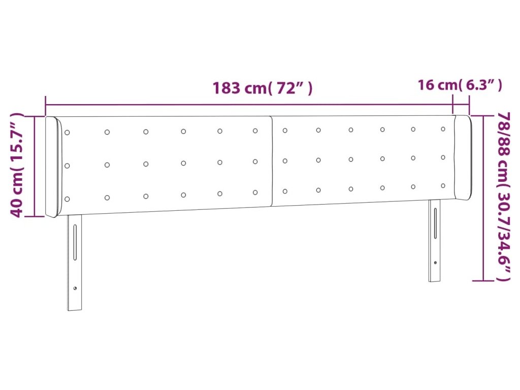 Čelo postele typu ušák 183x16x78/88 cm samet [3119262]