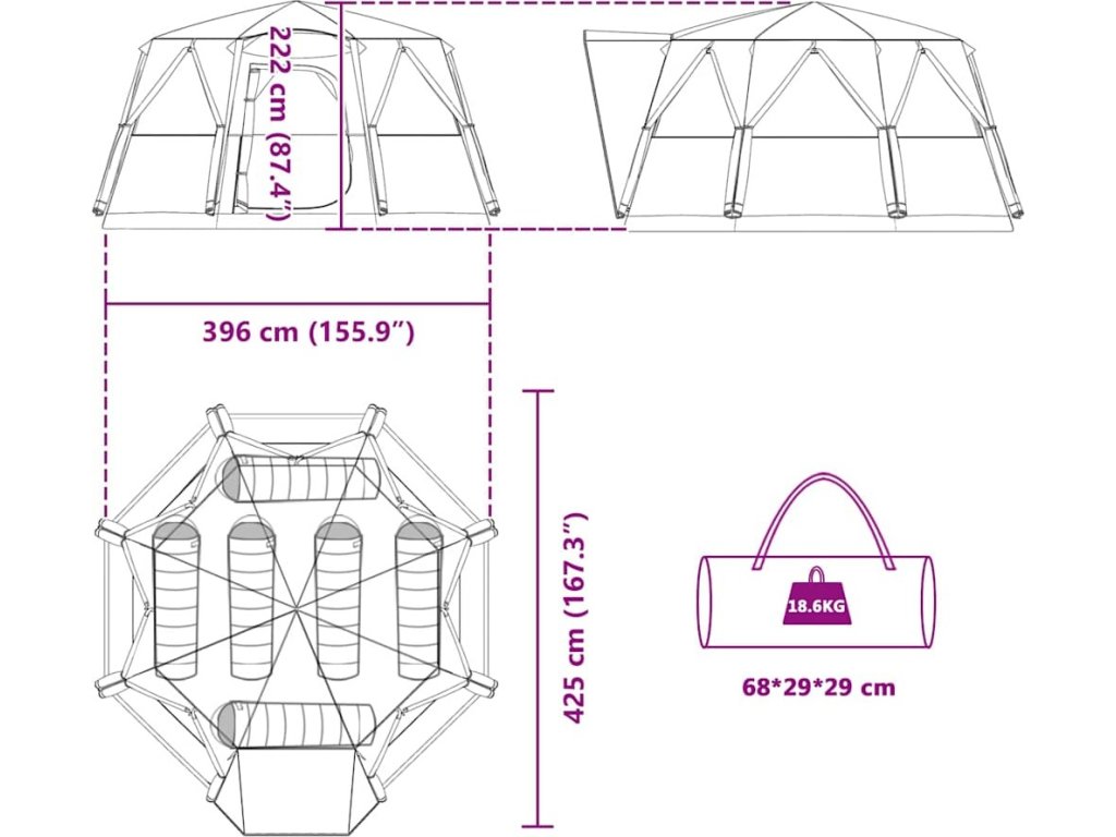 - Univerzální doporučené použití Tento stan se hodí na rodinné víkendy nebo sezónní kempování a téměř se přizpůsobí všem podmínkám. Je ideální na vytváření sladkých vzpomínek z výletů v přírodě.