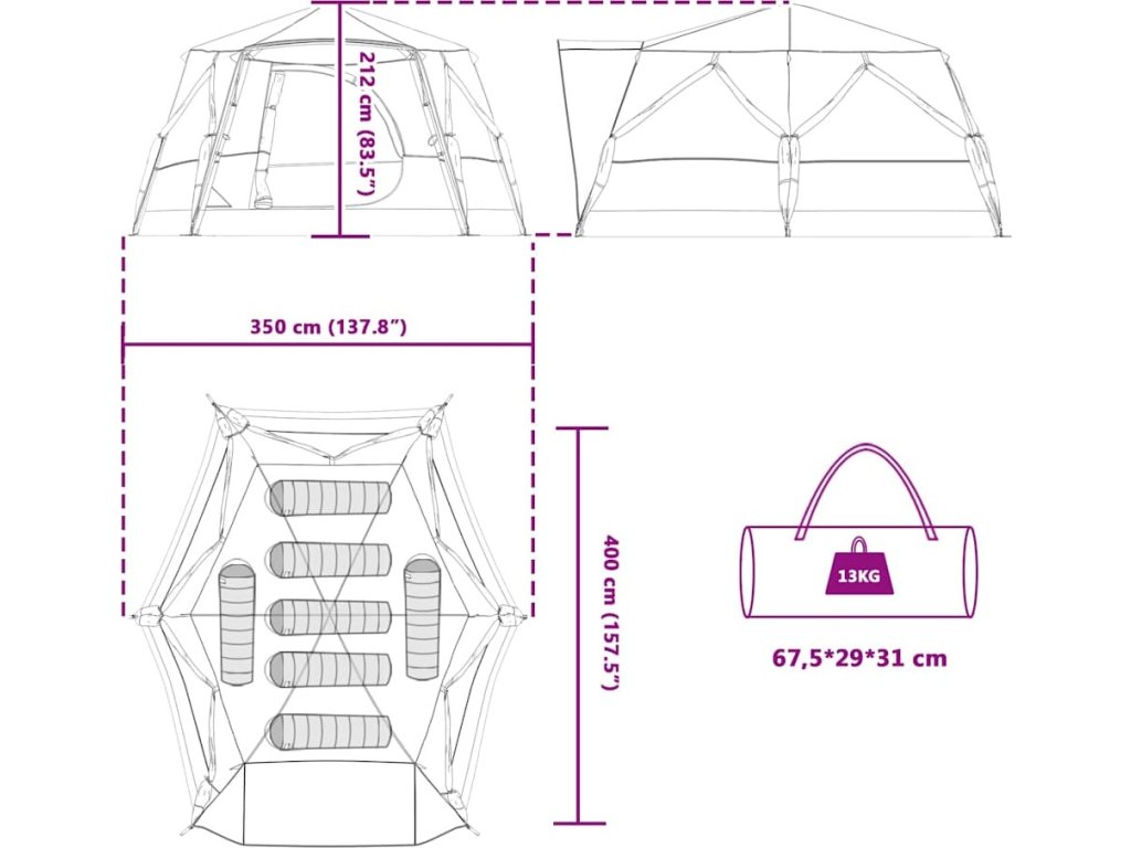 - Univerzální využití: Ideální na léto a kempovací sezónu, tenhle stan se hodí do různých venkovních prostředí, od zahrad po otevřenou přírodu. Jeho variabilita ho dělá skvělou volbou pro různé aktivity, od rodinnejch setkání po dobrodružný akce, nabízející jak pohodlí, tak i styl.