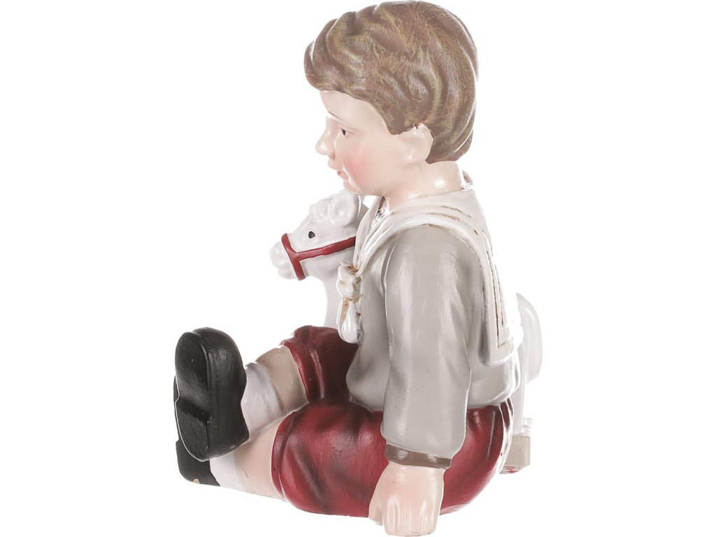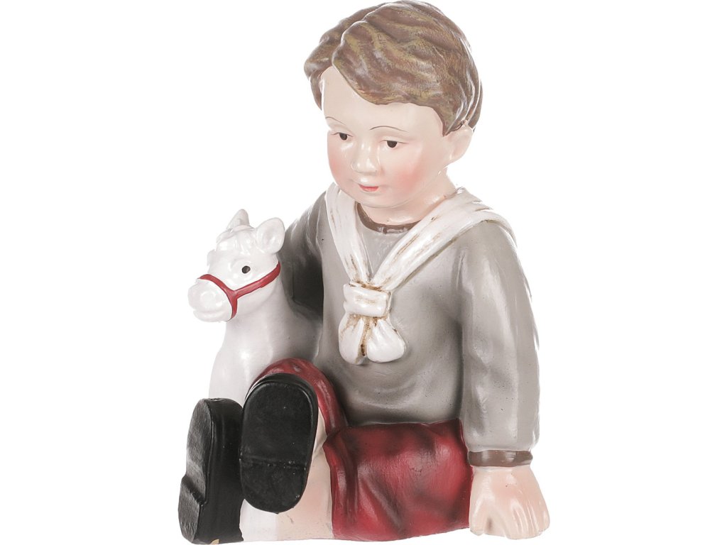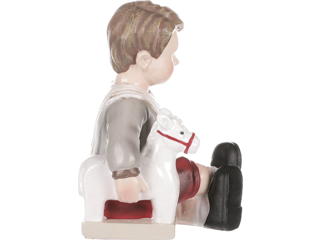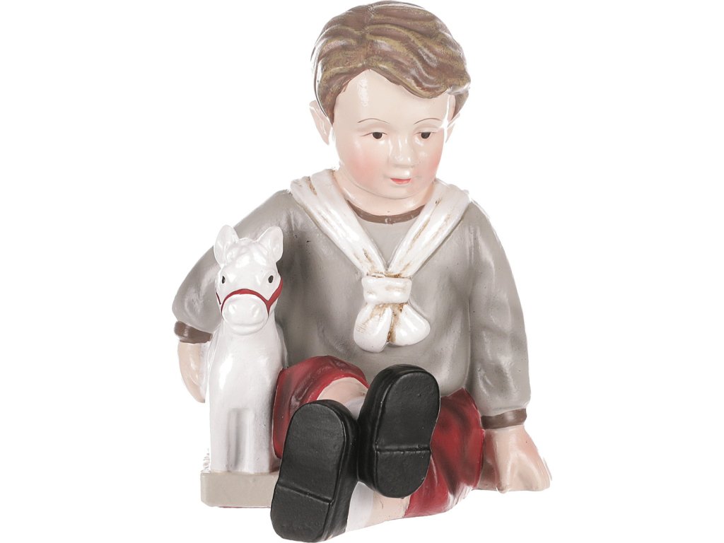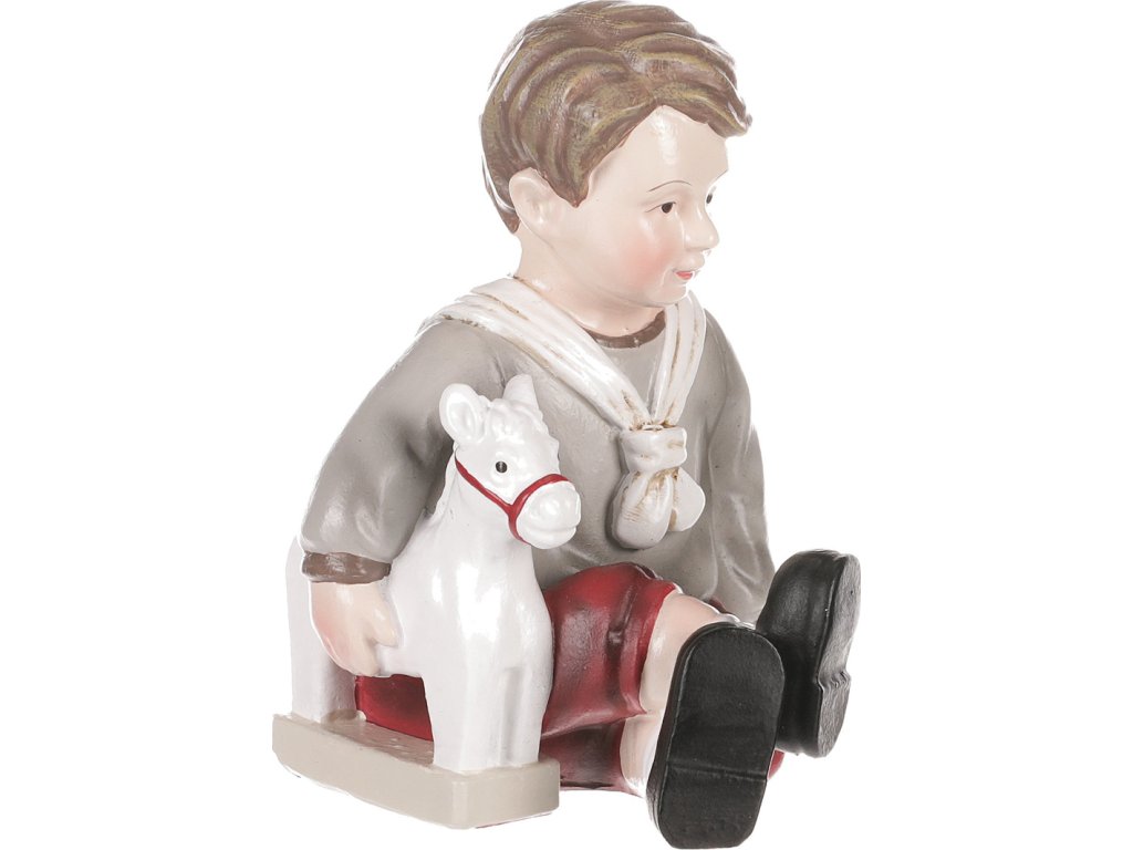 Tato nádherná figurka z polyresinu zobrazuje svátečně oděného chlapce, který s láskou hýčká svou nejoblíbenější hračku v podobě bílého koníka. Představuje zde jeho nejlepšího kamaráda, se kterým společně sdílí radosti i strasti. Společně jakoby čekají na samotný příchod Ježíška, aby se mohli těšit z dárků, které dostanou. Tato figurka je nejen krásnou a nevšední ozdobou, ale i připomenutím síly přátelství a radosti, které nám Vánoce mohou přinést. Ať už ji postavíte kamkoliv, bude vám připomínat, že mezi nejcennější dary nepatří jen fyzické, nýbrž ty v podobě lásky, přátelství a vzájemného porozumění.