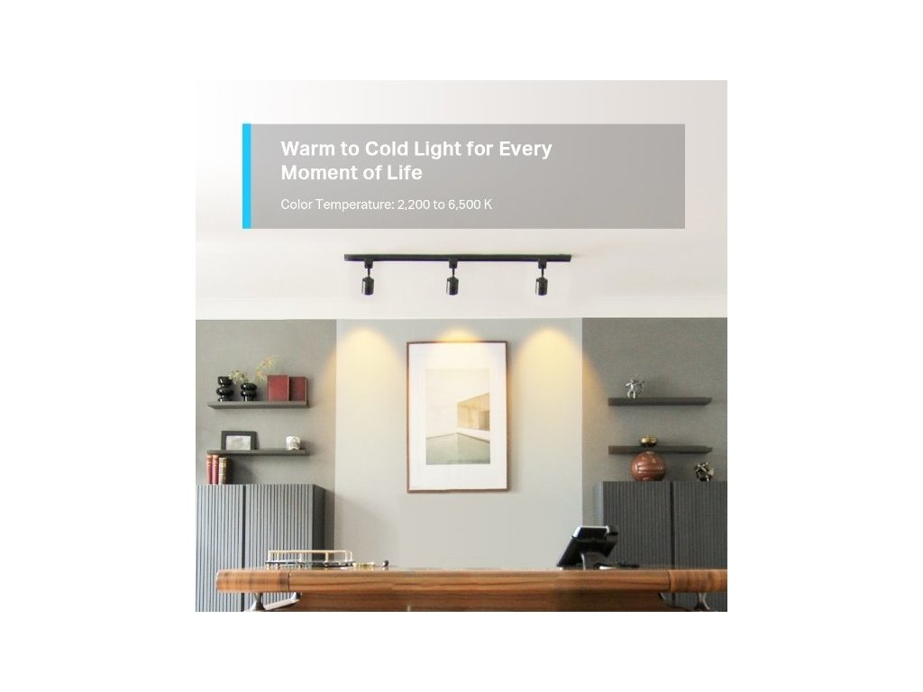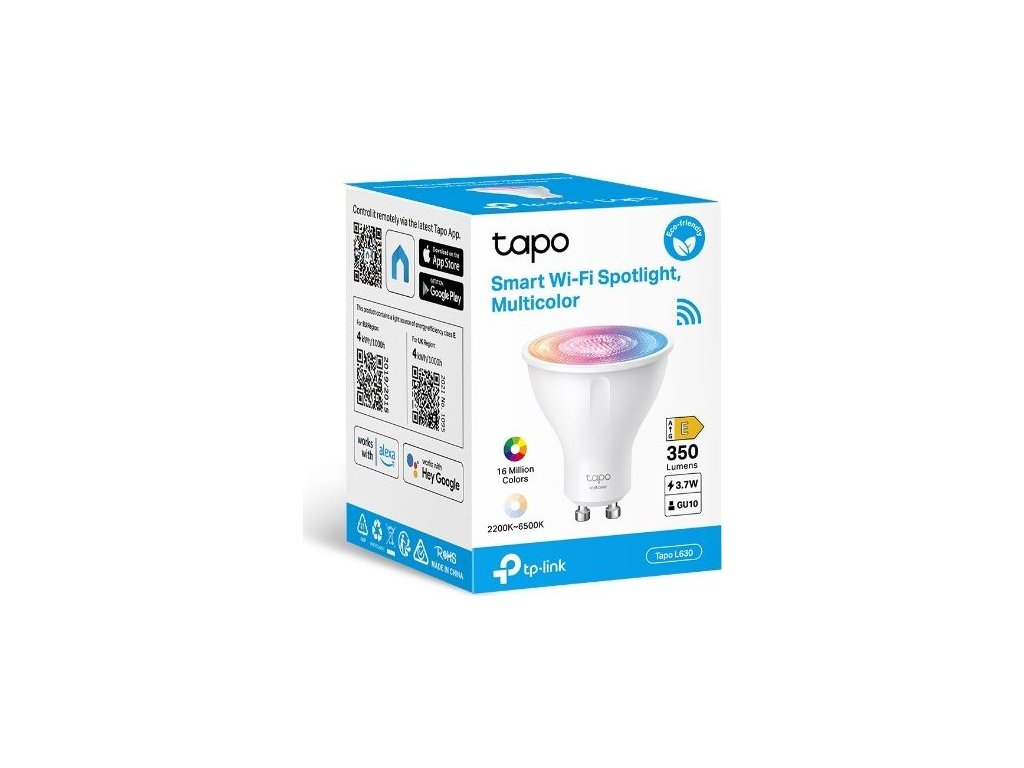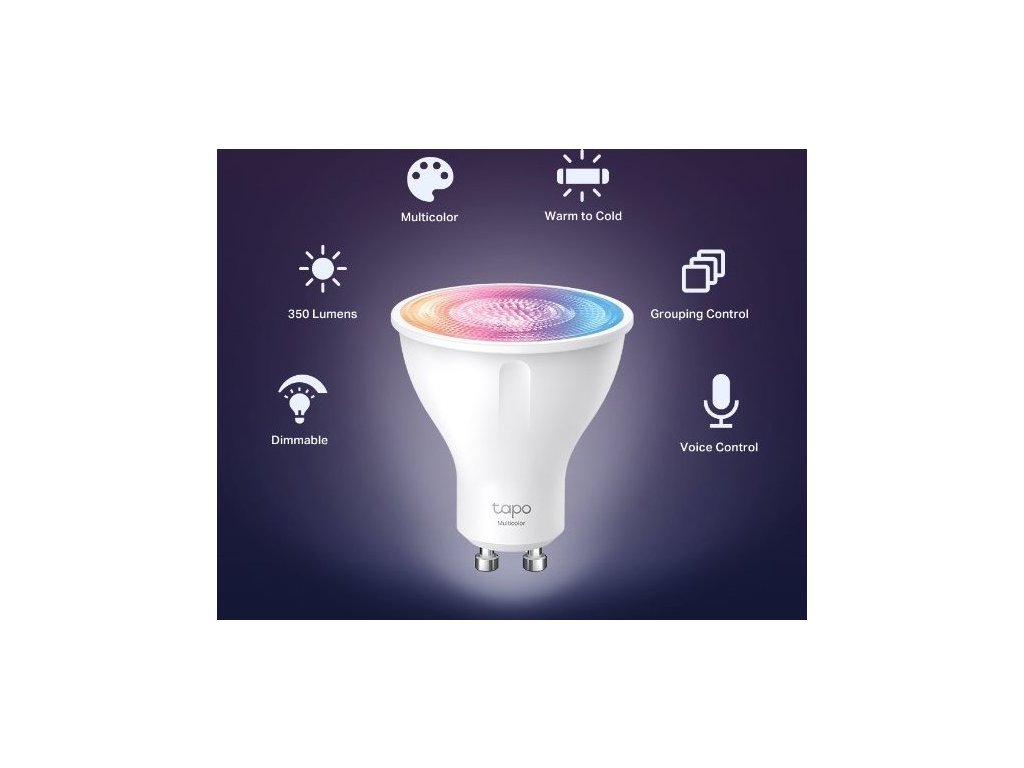 - 1x chytrá žárovka TP-Link Tapo L630 GU10, 3,7W, 230V, přes IP, stmívatelná, 2200K až 6500K
