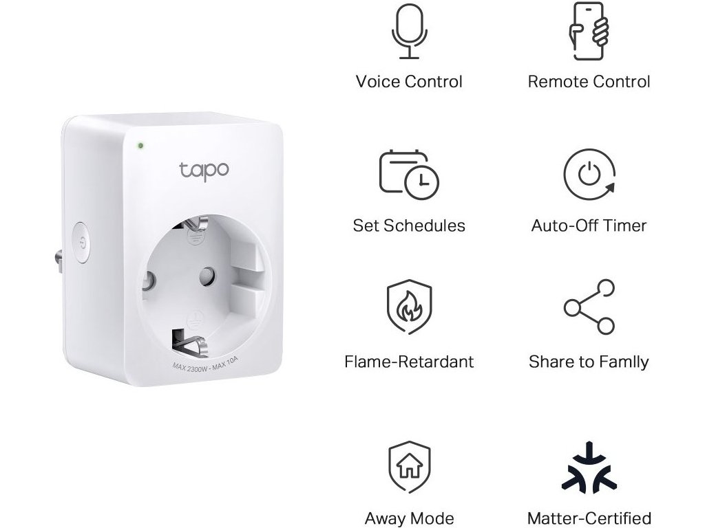 Chytrá zásuvka Tapo P100M od značky TP-Link vám usnadní život v domácnosti i v kanceláři. Poskytuje spoustu praktických funkcí, které si oblíbíte. Oceníte vzdálené ovládání, časovač, režim nepřítomnosti, jednoduchou správu a mnoho dalších vychytávek. Tapo P100M má kompaktní rozměry, abyste měli pohodlný přístup i k sousedním zásuvkám.