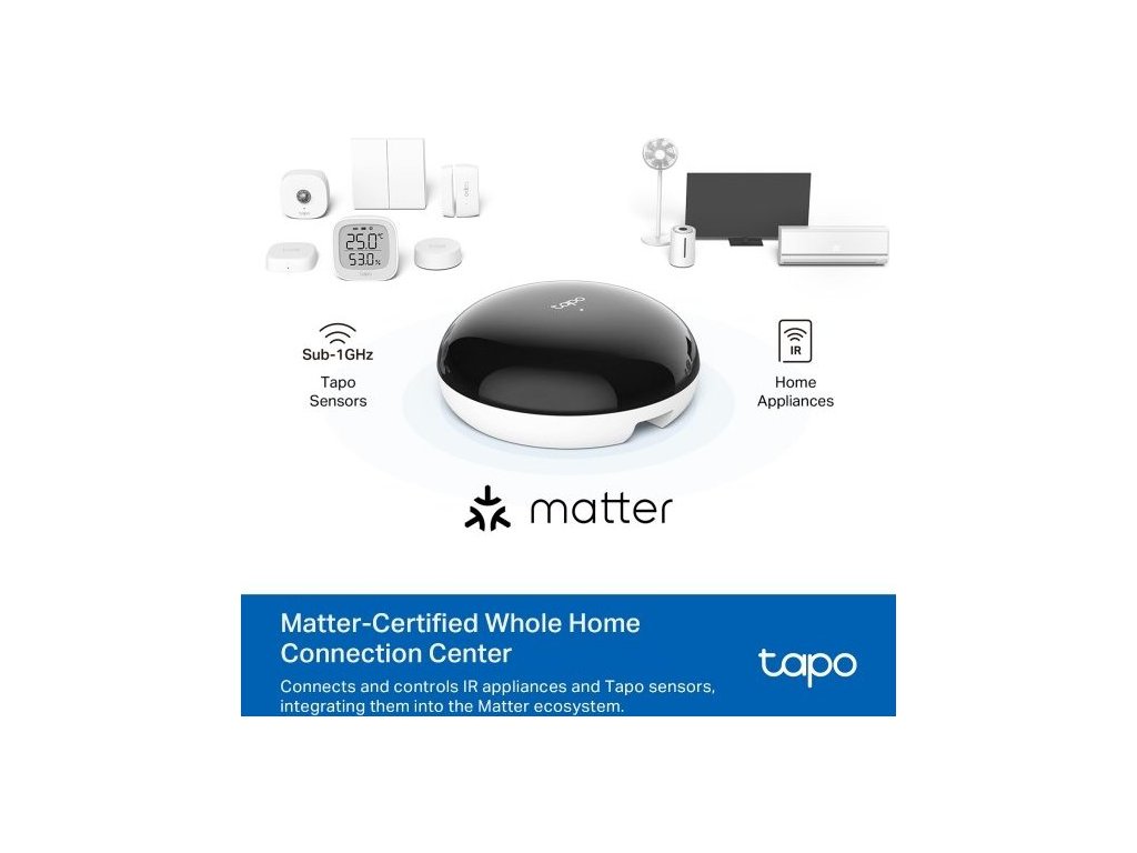 Svá zařízení k hubu spárujete velmi snadno. Díky certifikovanému systému Matter připojujete a ovládáte IR elektroniku a senzory. Pro pohodlné párování a správu využijete praktickou aplikaci Tapo. Umožní vám ovládání svých zařízení kdykoliv a odkudkoliv.