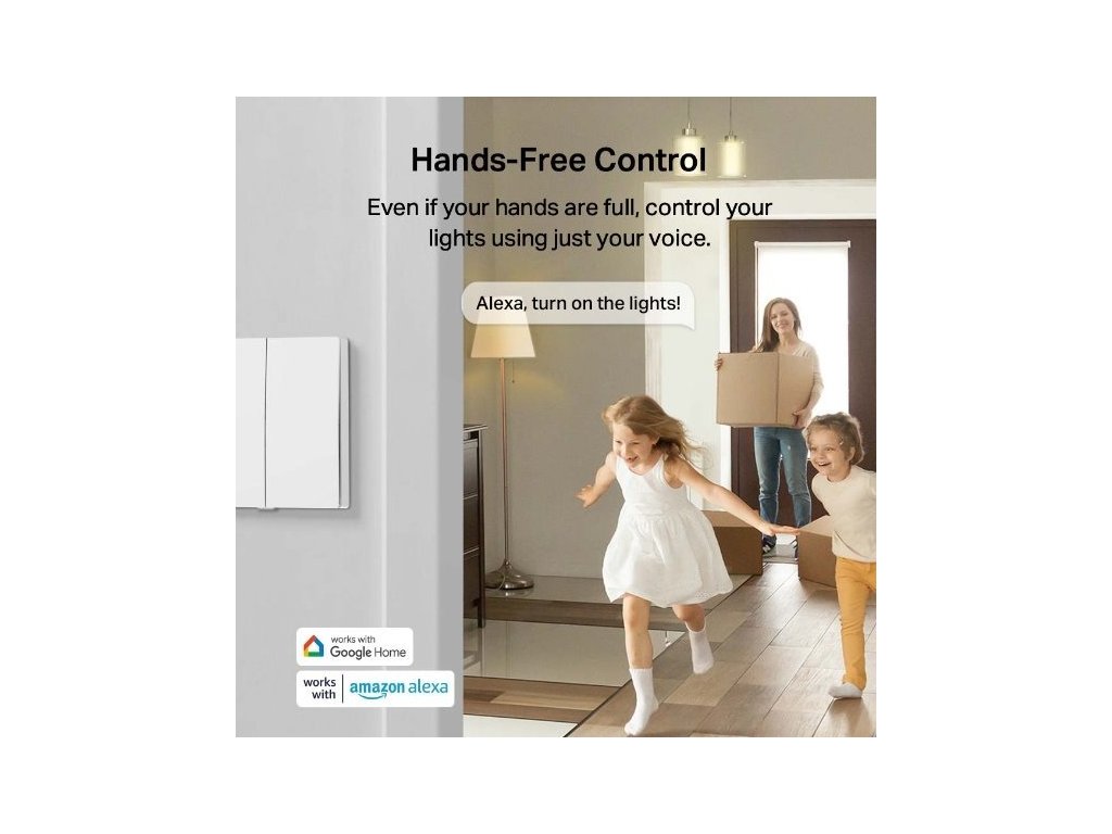 S chytrým vypínačem TP-Link Tapo S220 zapínáte a vypínáte světla pomocí telefonu s aplikací Tapo nebo hlasovými příkazy prostřednictvím Amazon Alexy nebo Asistenta Google. Zapomněli jste před odchodem do práce zhasnout? Aplikace vám umožní ovládat světla i na dálku.