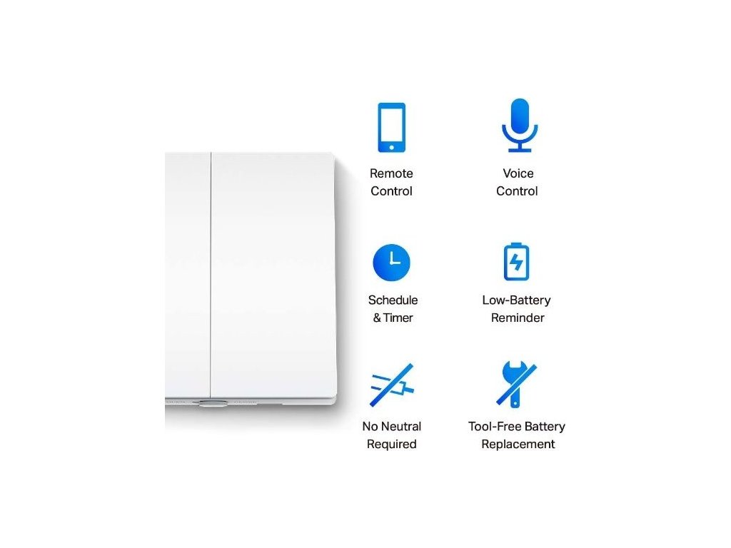 Vypínač napájí baterie, kterou jednoduše vyměníte. Nepotřebujete k tomu ani žádný nástroj. Tapo S220 nevyžaduje nulový vodič. Snadno ho tedy zapojíte.