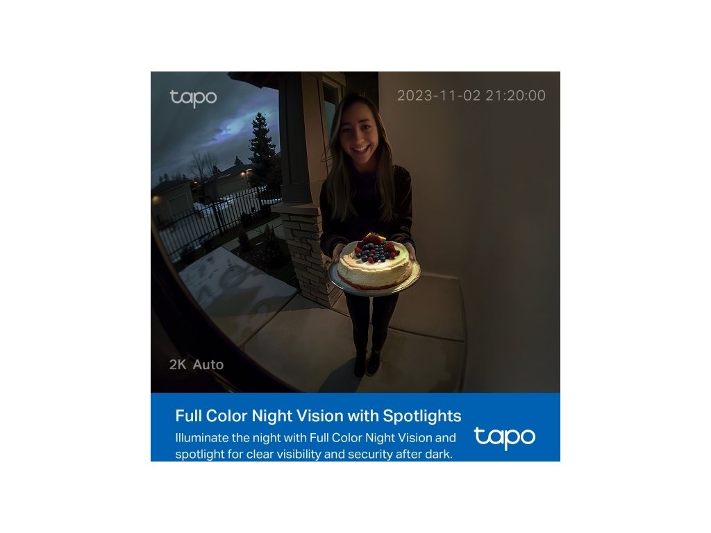 Přišla k vám nečekaná návštěva? Ověřte si, kdo stojí za dveřmi, než mu otevřete. Chytrý videozvonek/videotelefon Tapo od značky TP-Link je vybavený kamerou, která vám poskytne obraz ve vysokém rozlišení – 2K. Zaznamenává dění před vaším vchodem tak, abyste si mohli prohlédnout každý detail.
