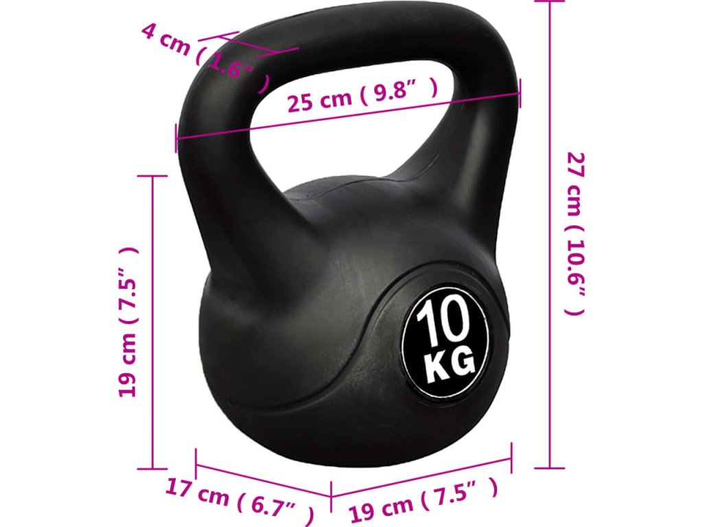 Tato činka kettlebell je vyrobena z plastu s kompaktní vnitřní částí. Má masivní a profesionální konstrukci. Tato činka kettlebell váží 10 kg. Materiál zajišťuje, že během cvičení nedojde k poškození podlahy.