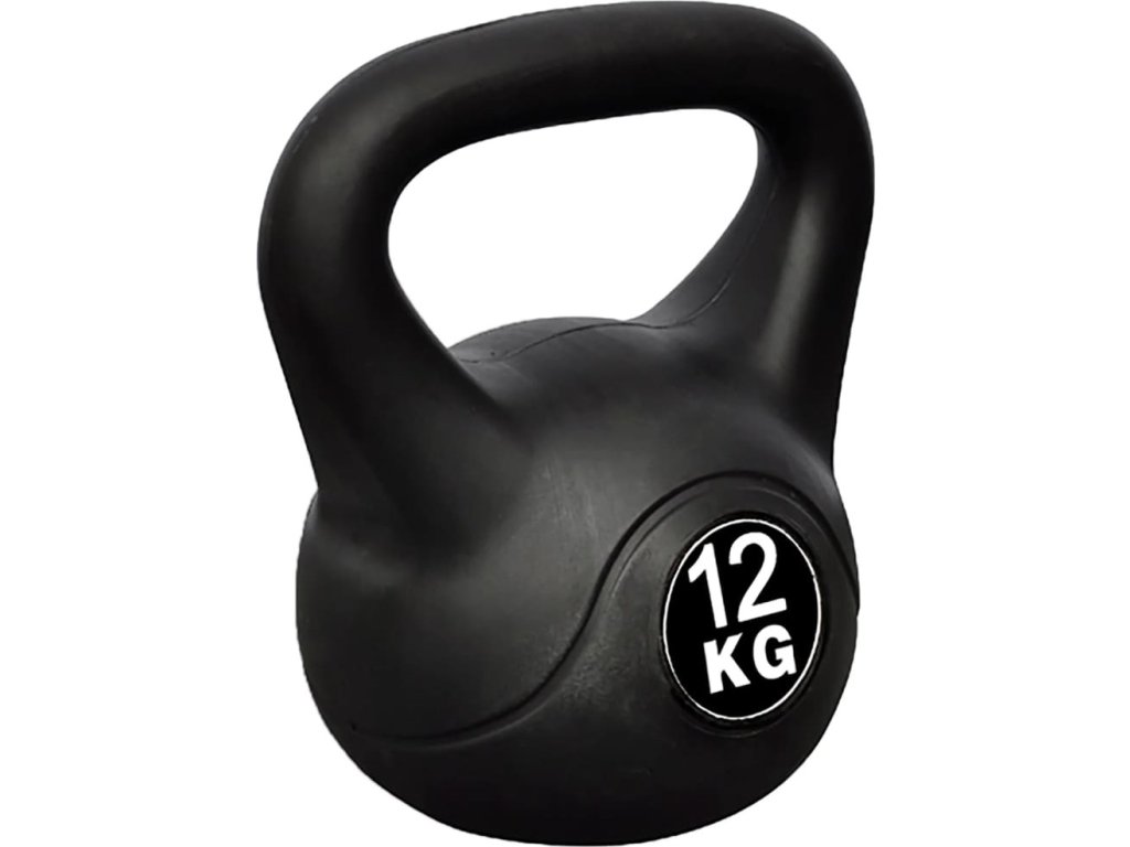 Tato činka kettlebell je vyrobena z plastu s kompaktní vnitřní částí. Má masivní a profesionální konstrukci. Tato činka kettlebell váží 12 kg. Materiál zajišťuje, že během cvičení nedojde k poškození podlahy.