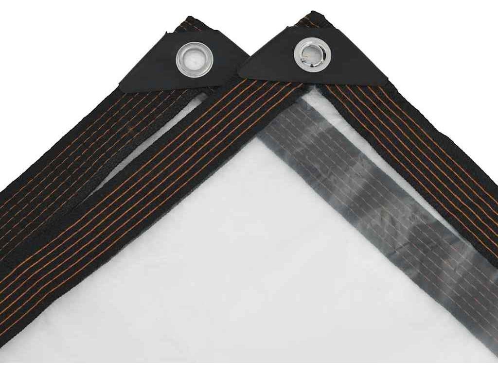 - Praktická očka: Průhledná plachta je ve čtyřech rozích a na okrajích opatřena oky pro snadné upevnění. Vzdálenost mezi jednotlivými oky je přibližně 100 cm.