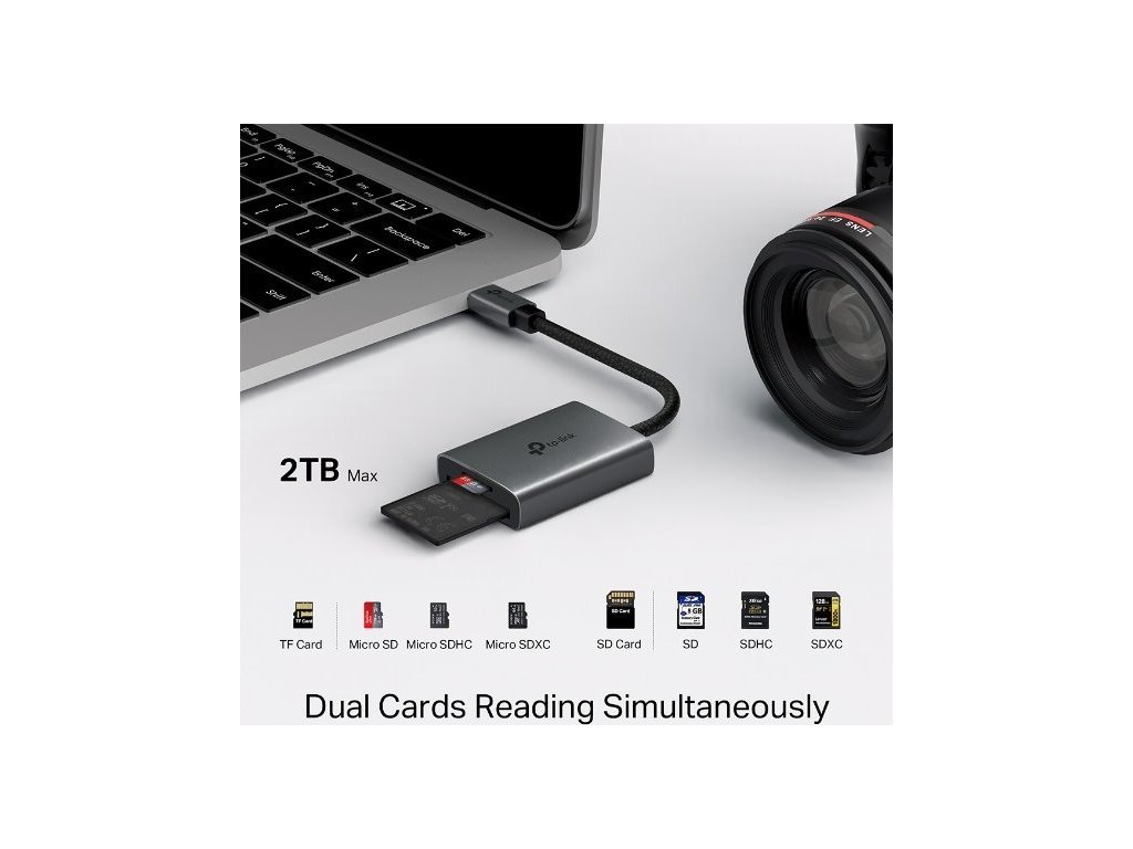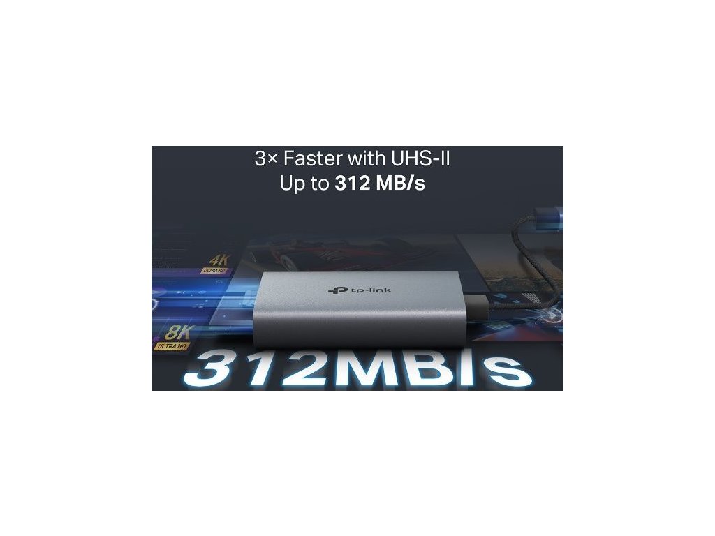 Čtečka karet TP-Link UA440C poskytuje vysokou rychlost přenosu dat a širokou kompatibilitu. Podporuje SD4.0 UHS-II karty a poskytne vám vysokou rychlost čtení až 312 MB/s. Snadno přenesete 8K i 4K videa nebo velké soubory z karet. USB 3.0 typu C zajistí stabilní a rychlé připojení s nahráváním rychlostí až 5 Gb/s.