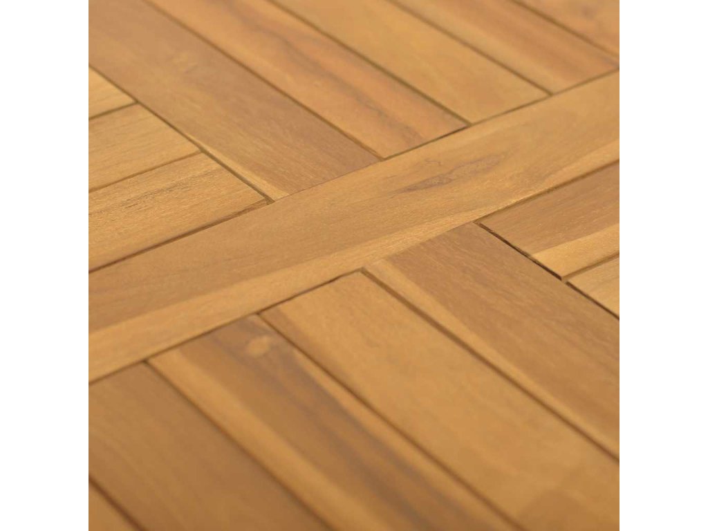 - Pevný materiál: Tato stolní deska je vyrobena z masivního teakového dřeva. Masivní teakové dřevo je krásný přírodní materiál. Prošlo již procesem smršťování, bylo uměle vysušené a poté jemně a dohladka obroušené. Teakové dřevo je známé svou výjimečnou pevností a odolností vůči povětrnostním vlivům.