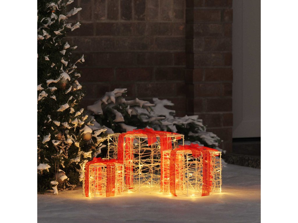 - Bez potřeby montáže Dá se koupit v sadě tří dárkových krabic, takže ji nabízíme rovnou připravenou k vystavení, což ti usnadní přípravy na svátky. O nic se nemusíš starat – prostě vybalíš a dáš tam, kde chceš, pro rychlou porci svátečního kouzla, co tě potěší bez námahy.