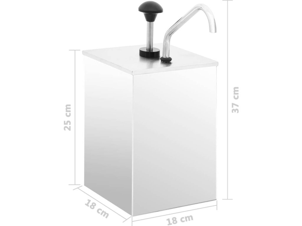 Tento dávkovač omáček s pumpičkou je vyrobený z vysoce kvalitního nerezového materiálu. Všechny části, které přicházejí do styku s potravinami, jsou vyrobené z nerezové oceli 304. Tento dávkovač proto nepodléhá korozi a snadno se čistí. Se svou velkou kapacitou pojme dostatečné množství různých omáček, jako je majonéza, kečup, sojová omáčka atd. V tomto dávkovači na omáčky můžete servírovat 3,5 l omáčky.