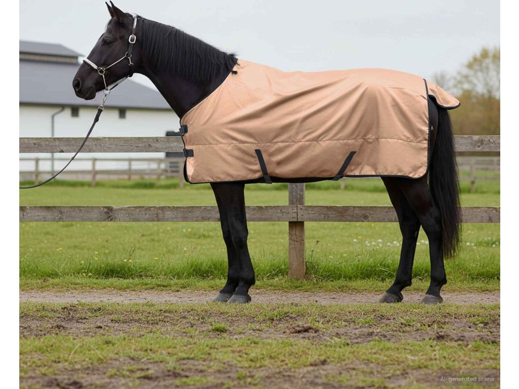 - Vysokokvalitní polyester: Deka se vyrábí z vodotěsného polyesteru, což zajišťuje spolehlivou ochranu před deštěm a sněhem. Tento odolný materiál vydrží extrémy počasí, poskytuje teplo a udržuje koně v suchu, čímž majiteli dodává klid. Můžete ji prát v pračce, což usnadňuje údržbu a zaručuje dlouhou životnost bez ztráty vzhledu nebo funkčnosti.
