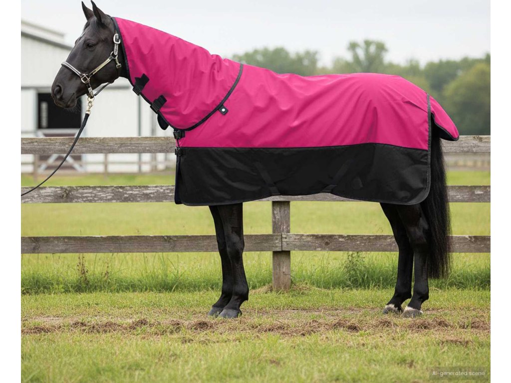 - Vysokokvalitní polyester: Deka se vyrábí z vodotěsného polyesteru, což zajišťuje spolehlivou ochranu před deštěm a sněhem. Tento odolný materiál vydrží extrémy počasí, poskytuje teplo a udržuje koně v suchu, čímž majiteli dodává klid. Můžete ji prát v pračce, což usnadňuje údržbu a zaručuje dlouhou životnost bez ztráty vzhledu nebo funkčnosti.