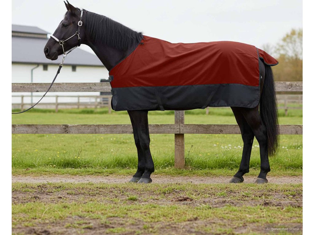 - Vysokokvalitní polyester: Deka se vyrábí z vodotěsného polyesteru, což zajišťuje spolehlivou ochranu před deštěm a sněhem. Tento odolný materiál vydrží extrémy počasí, poskytuje teplo a udržuje koně v suchu, čímž majiteli dodává klid. Můžete ji prát v pračce, což usnadňuje údržbu a zaručuje dlouhou životnost bez ztráty vzhledu nebo funkčnosti.