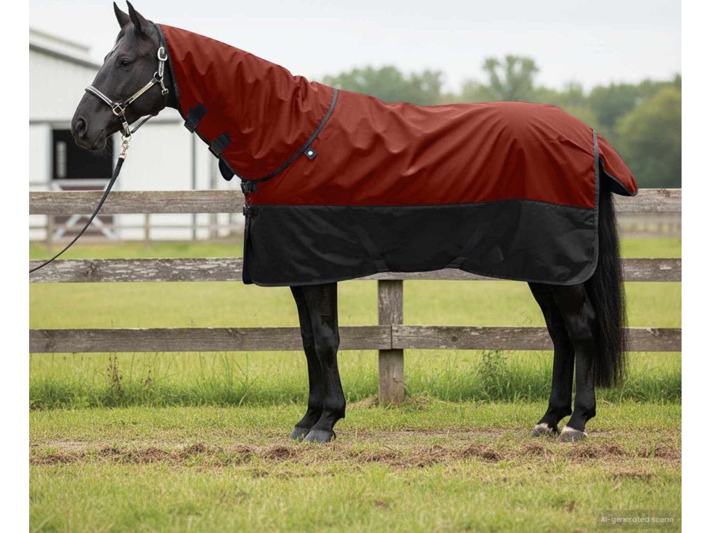 - Vysokokvalitní polyester: Deka se vyrábí z vodotěsného polyesteru, což zajišťuje spolehlivou ochranu před deštěm a sněhem. Tento odolný materiál vydrží extrémy počasí, poskytuje teplo a udržuje koně v suchu, čímž majiteli dodává klid. Můžete ji prát v pračce, což usnadňuje údržbu a zaručuje dlouhou životnost bez ztráty vzhledu nebo funkčnosti.