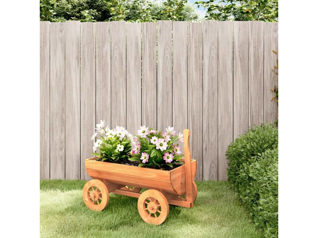 - Snadný pohyb: Zahradní vozík je vybaven čtyřmi dřevěnými kolečky a rukojetí, takže jej můžete snadno přemisťovat po zahradě, dvorku nebo přední verandě.