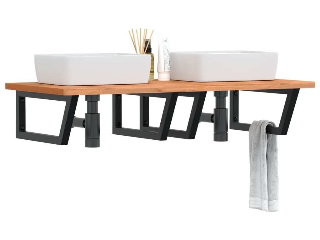 Deska pod umyvadlo nástěnná ocel a masivní bukové dřevo [3302455]