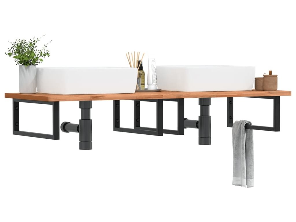 Deska pod umyvadlo nástěnná ocel a masivní bukové dřevo [3302457]