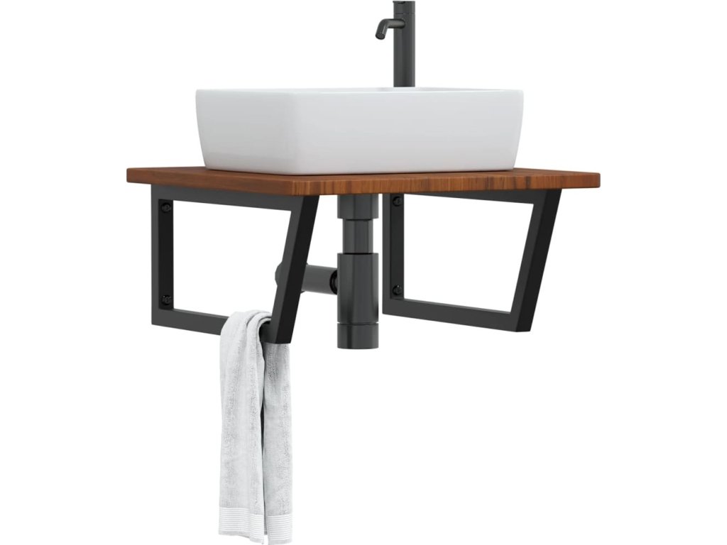 Deska pod umyvadlo nástěnná ocel a masivní dubové dřevo [3302487]