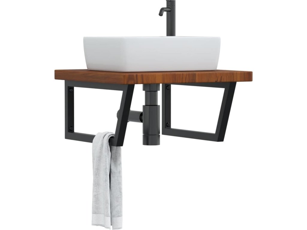 Deska pod umyvadlo nástěnná ocel a masivní dubové dřevo [3302498]
