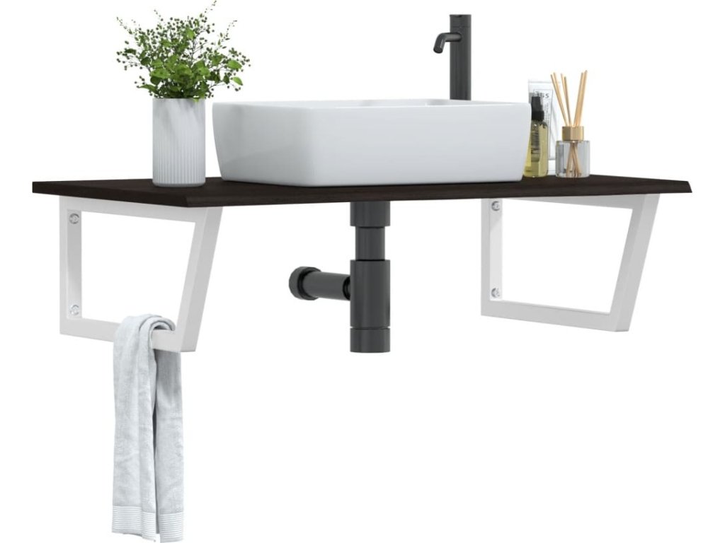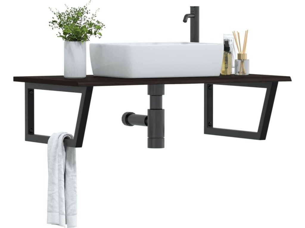 Deska pod umyvadlo nástěnná ocel a masivní dubové dřevo [3302638]