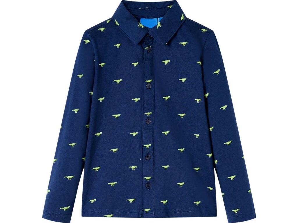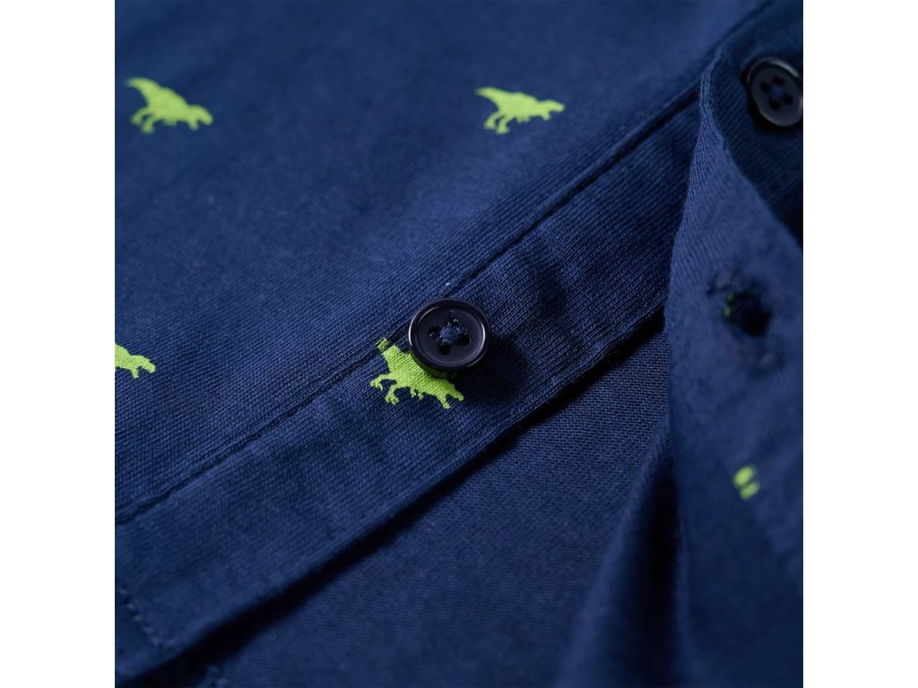 Tato dětská košile má dlouhé rukávy, špičatý límec a zapíná se na řadu knoflíčků. Dětská mikina je celá potištěna dinosaury. Je vyrobena ze 100% bavlny, takže je velmi pohodlná a prodyšná.