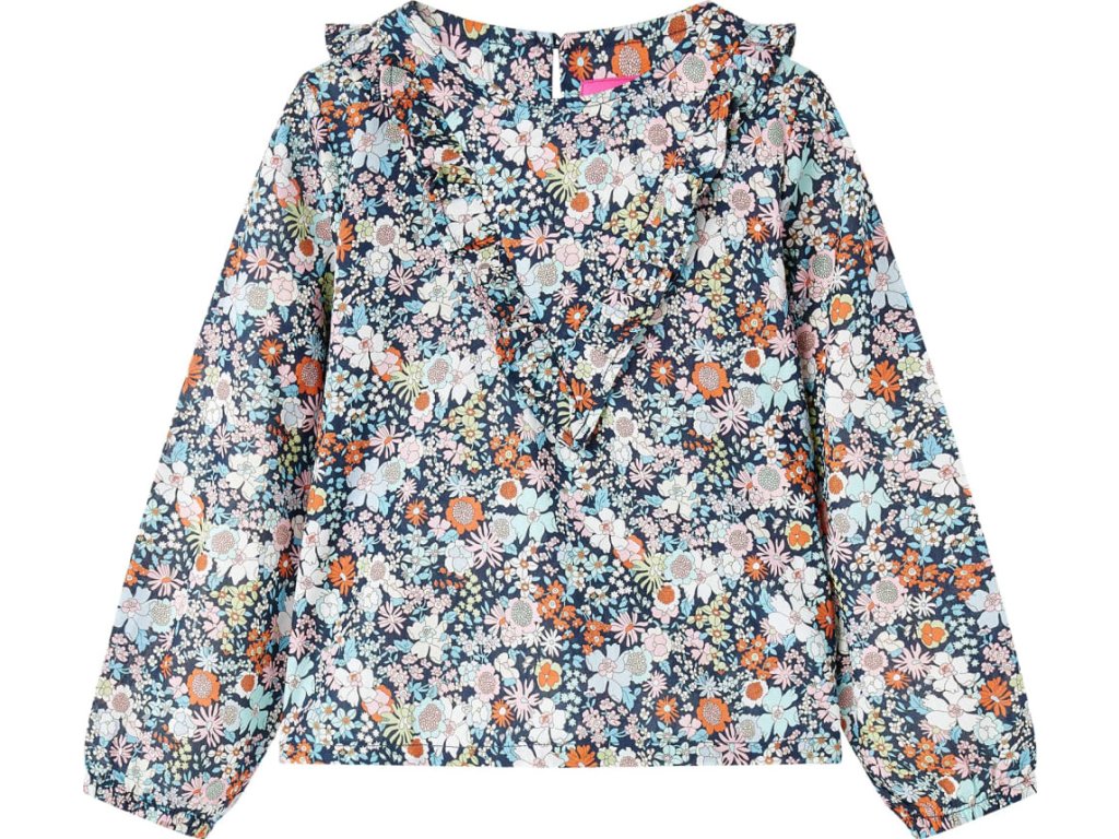 Tato dětská košile má dlouhé rukávy, kulatý výstřih a klíčovou dírku s knoflíčkem vzadu na krku. Tato tmavě modrá košile má po celé ploše květinový potisk. Dětská košile s dlouhým rukávem je vyrobena z měkkého materiálu se 100% bavlnou, takže je pohodlná a teplá.