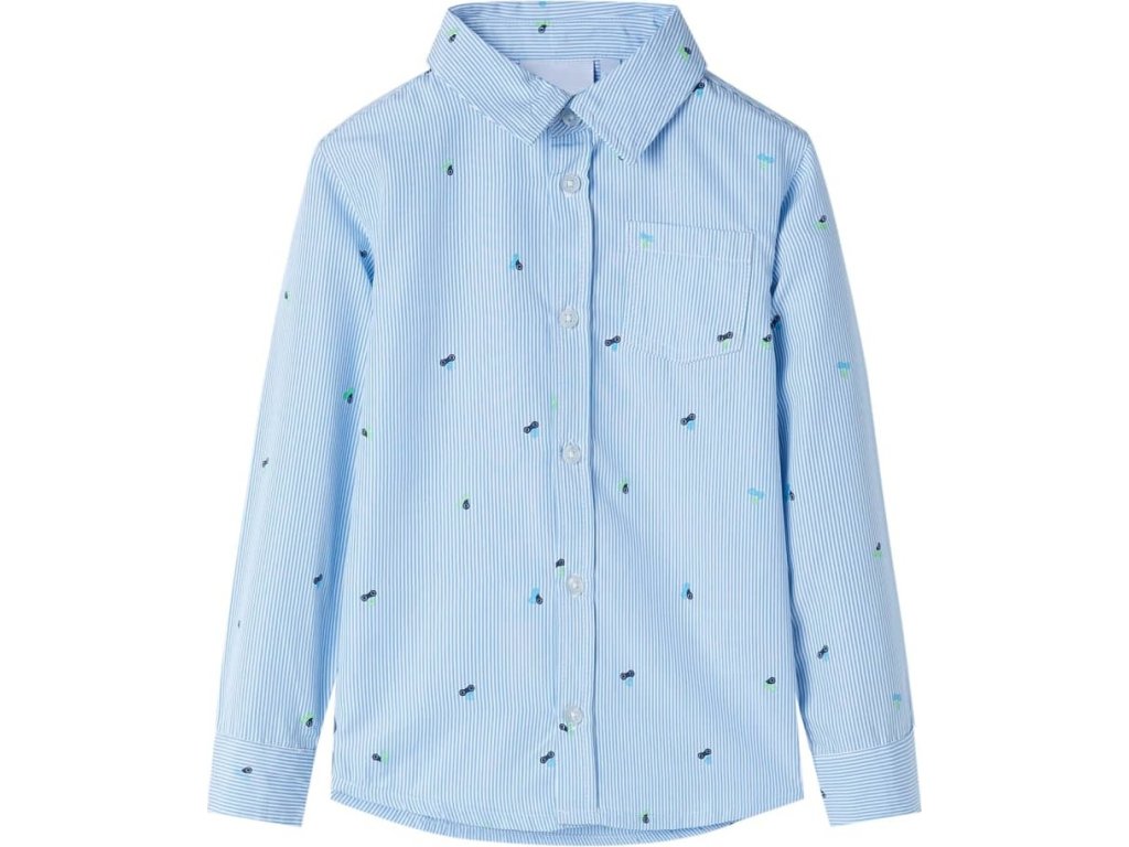 Tato dětská košile má dlouhé rukávy, špičatý límec, jednu náprsní kapsu a zapíná se na řadu knoflíků. Je vyrobena ze 100% bavlny, takže je velmi pohodlná a prodyšná.