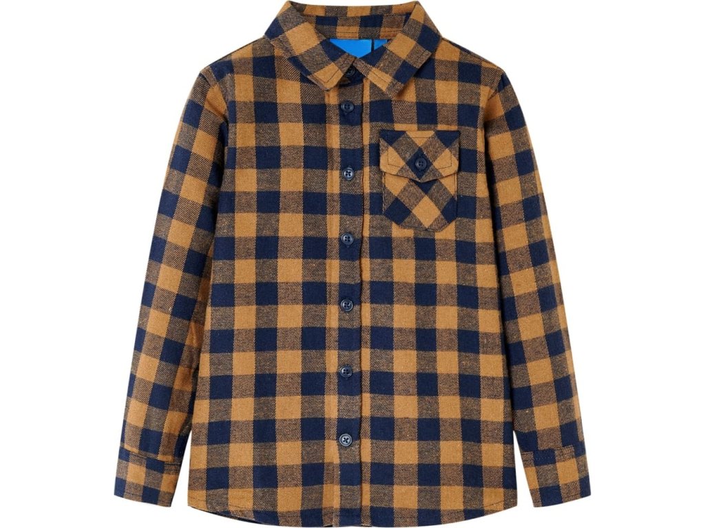 Tato dětská kostkovaná košile má dlouhé rukávy, špičatý límec, jednu náprsní kapsu a zapíná se na řadu knoflíků. Dětská kostkovaná košile je vyrobena z měkkého materiálu s 80 % bavlny a 20 % polyesteru, takže je pohodlná a prodyšná.