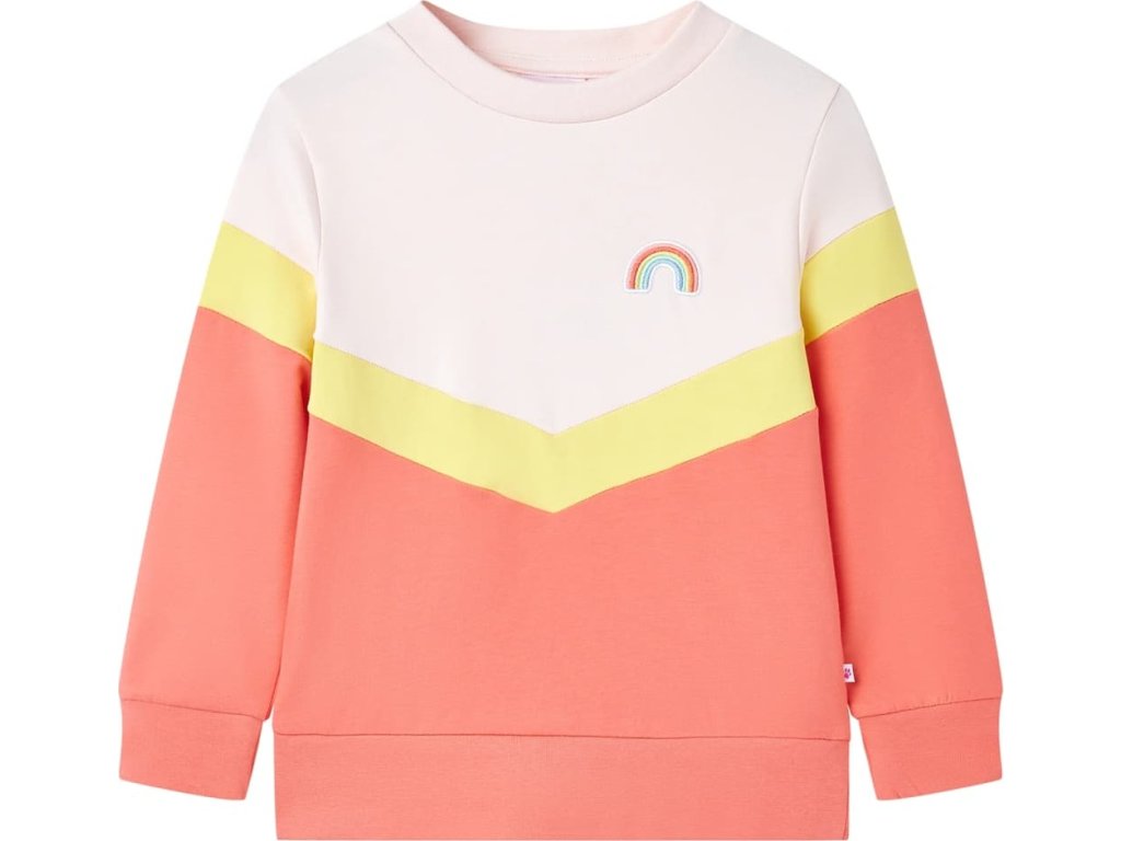 Tato dětská mikina má dlouhé rukávy, kulatý výstřih a žebrované okraje na manžetách, výstřihu a spodní části. Dětská mikina má na hrudi krásnou vyšívanou duhu. Dětská mikina je vyrobena z 95 % z bavlny a 5 % z elastanu, takže je velmi pohodlná a prodyšná.