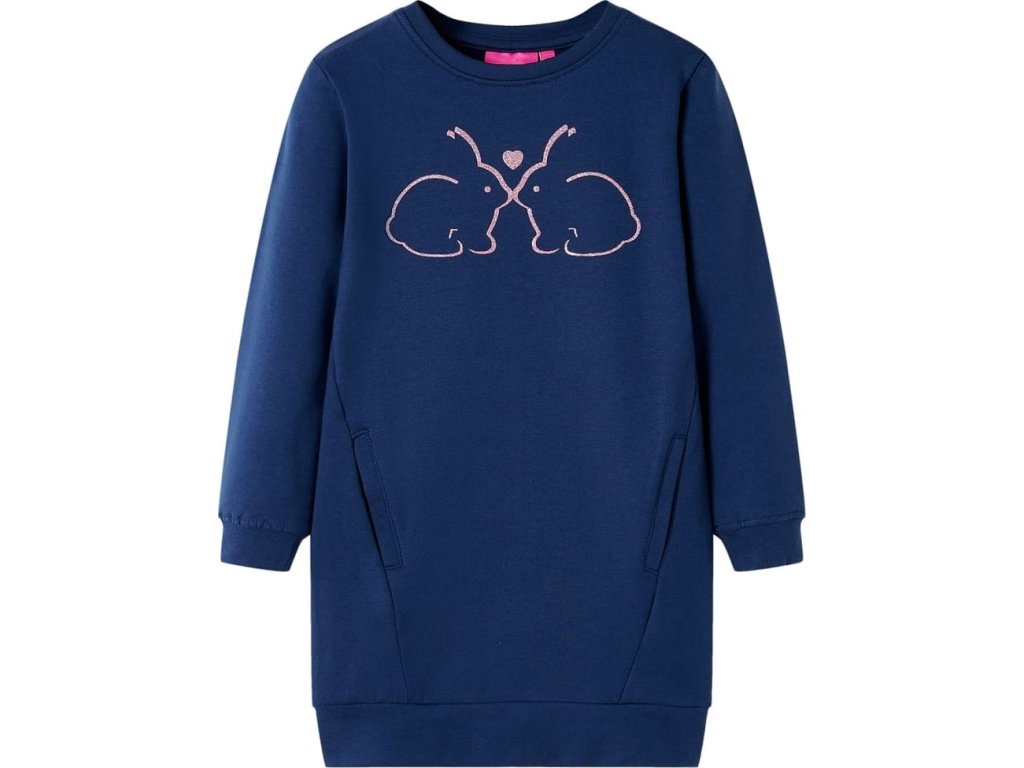 Tyto dětské mikinové šaty mají dlouhé rukávy, výstřih a rovný střih. Šaty mají 2 roztomilé králíčky a 2 kapsy vpředu. Tyto mikinové šaty jsou vyrobeny z 95 % z bavlny a 5 % z elastanu, takže jsou velmi pohodlné a prodyšné. Měkká fleecová podšívka poskytuje dětským mikinovým šatům dodatečné teplo.