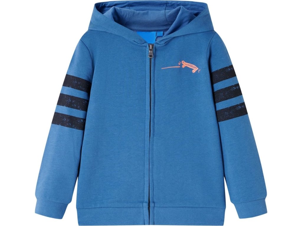 Tato dětská mikina s kapucí má dlouhé rukávy a zapíná se na zip. Tato dětská mikina s kapucí má okraje manžet a spodní lem z žebrovaného úpletu. Dětská mikina má vpředu potisk skateboardu a na rukávech pruhy. Tato mikina na zip je vyrobena z 80 % z bavlny a 20 % z polyesteru, takže je pohodlná a prodyšná. Dětská mikina s kapucí má měkkou fleecovou podšívku, takže je velmi teplá.