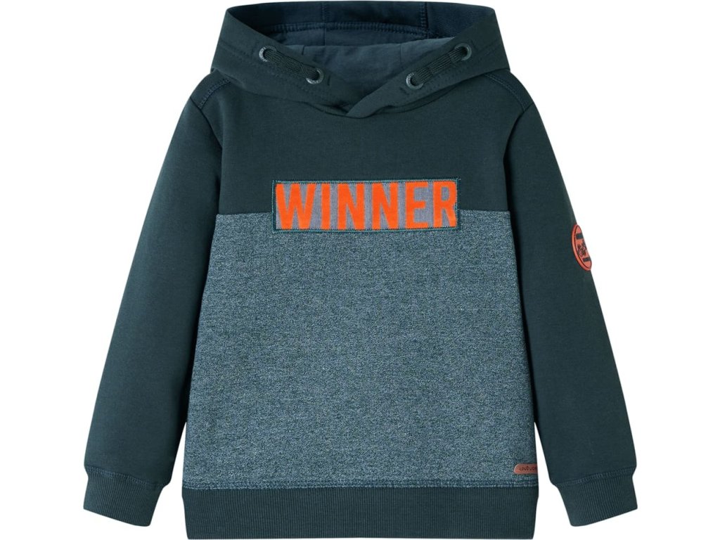 Tato dětská mikina s kapucí má dlouhé rukávy a žebrované manžety a spodní lem. Na této tmavě zelené mikině s kapucí je potisk s nápisem Winner. Dětská mikina s kapucí je vyrobena z 92 % z bavlny a 8 % z polyesteru a je ošetřena silikonem a enzymatickým opráním, aby byla měkká a příjemná na dotek.