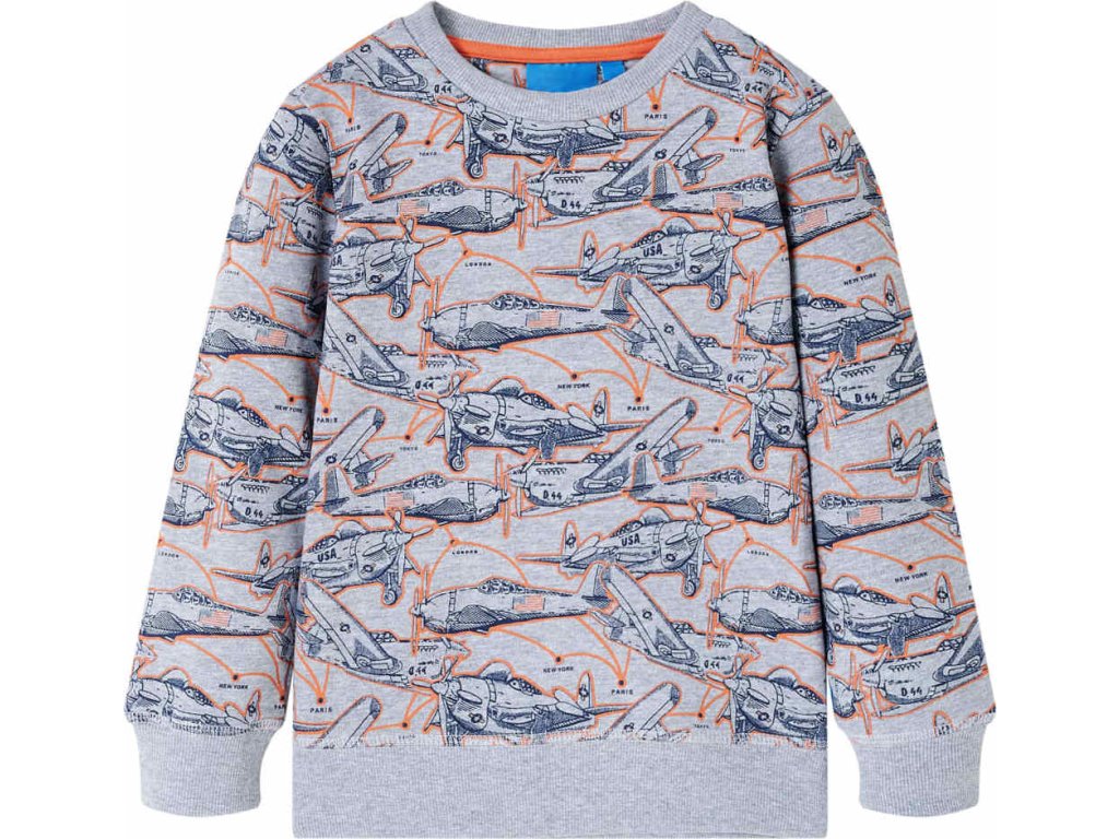 Tato dětská mikina má dlouhé rukávy, kulatý výstřih a žebrované okraje na manžetách, výstřihu a spodní části. Dětská mikina je celá potištěna letadly. Dětská mikina je vyrobena z měkkého materiálu s 85 % bavlny a 15 % viskózy, takže je pohodlná a prodyšná. Má měkkou fleecovou podšívku, takže je velmi teplá.
