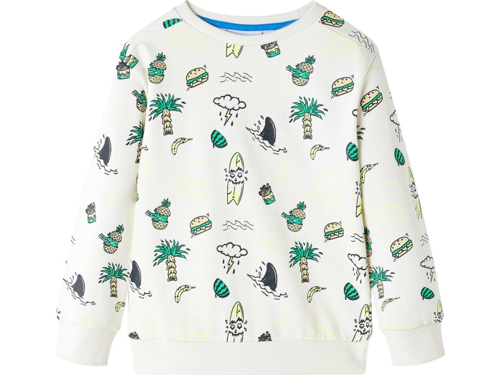 Tato dětská mikina má dlouhé rukávy, kulatý výstřih a žebrované okraje na manžetách, výstřihu a spodní části. Dětská mikina má barevný celoplošný potisk. Mikina je vyrobena z 80 % z bavlny a 20 % z polyesteru, takže je velmi pohodlná a prodyšná.