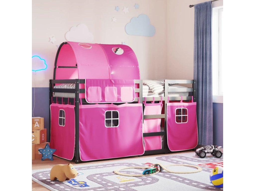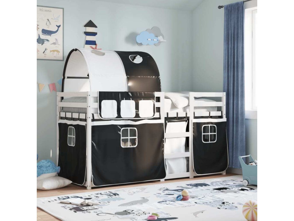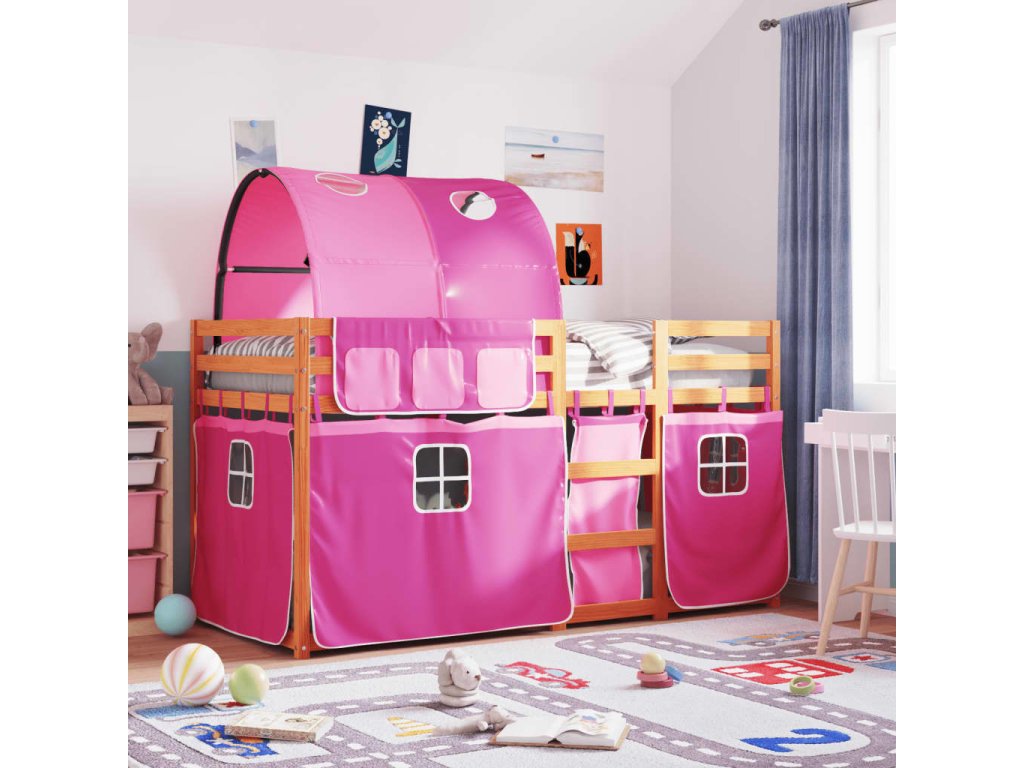 Dětská patrová postel se závěsy 80x200 cm borovice [3284006]