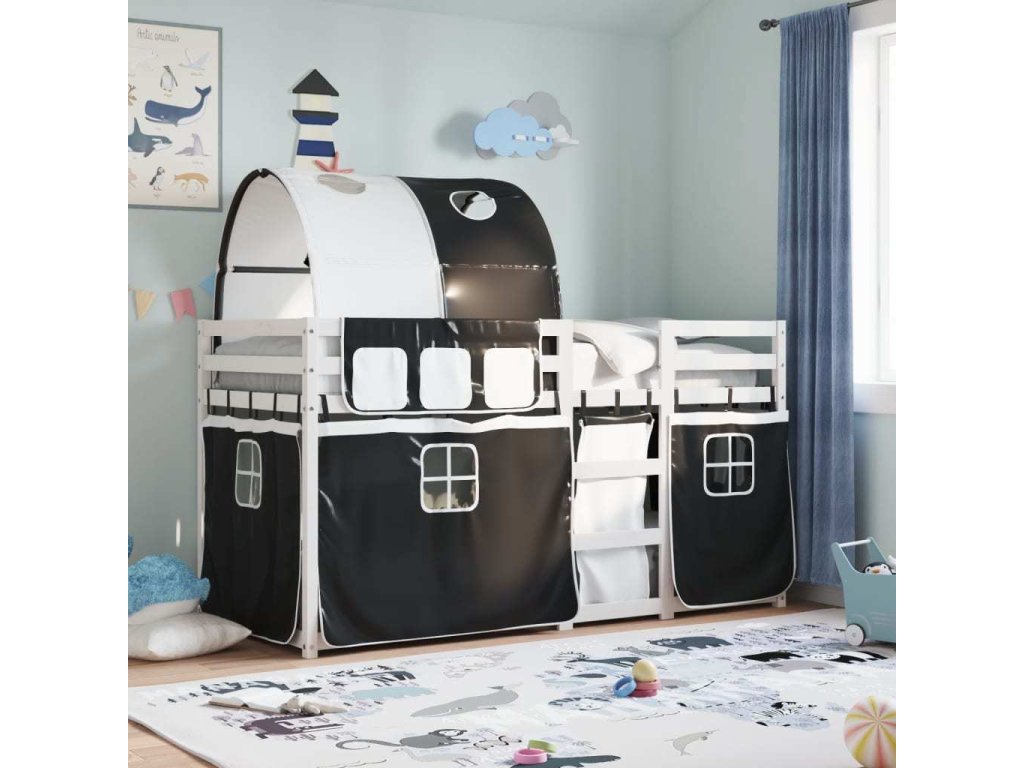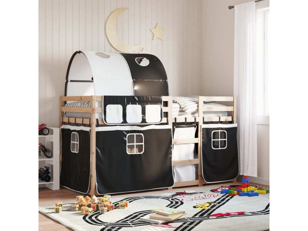 Dětská patrová postel se závěsy bílá a 90x190 cm borovice [3284031]