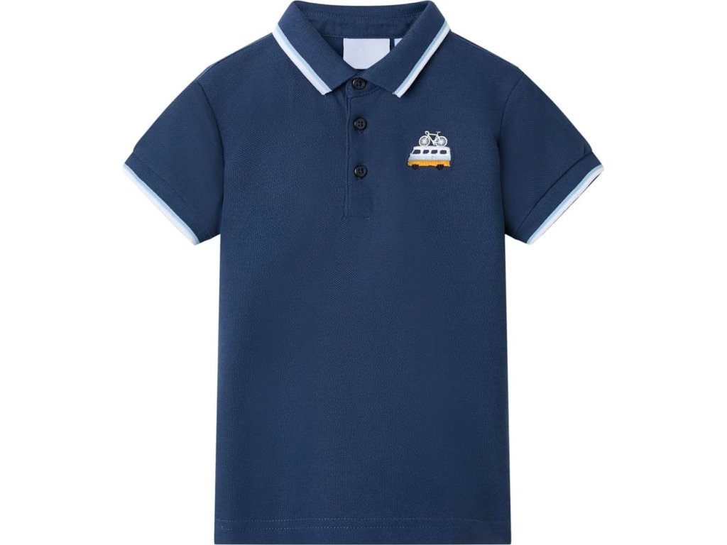 Tato dětská polokošile má krátké rukávy, knoflíkovou légu a žebrovaný límec. Dětská polokošile má na hrudi autobus a jízdní kolo. Polokošile pro děti je vyrobena ze 100% bavlny, takže je měkká a příjemná na dotek.