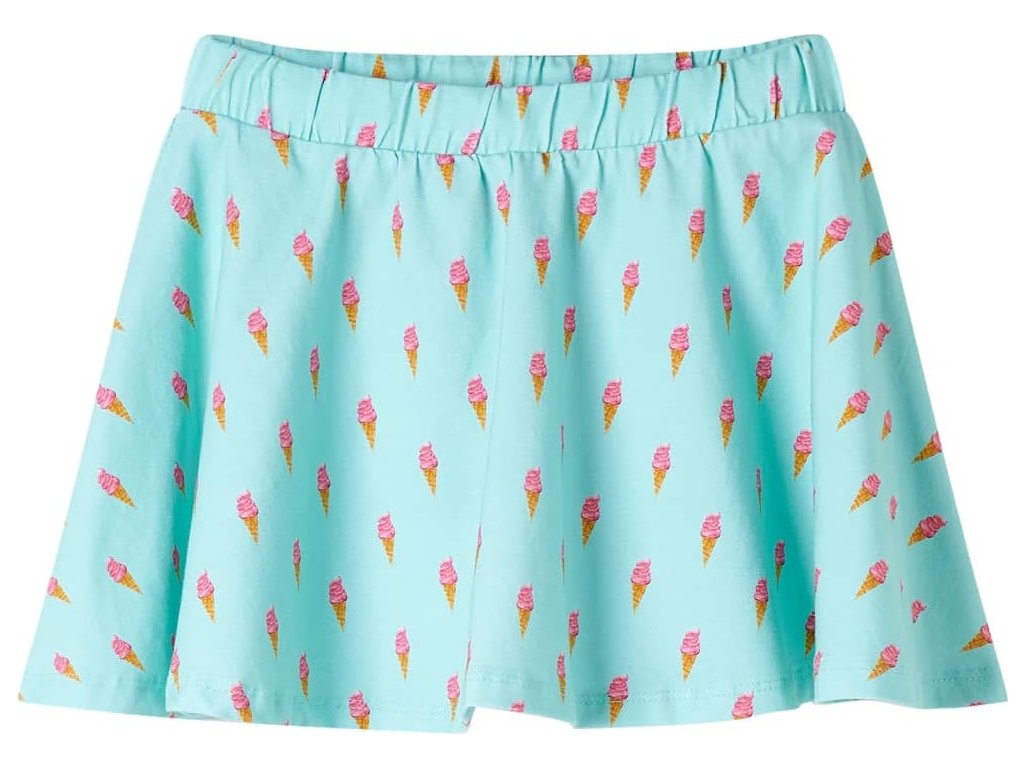 Tato dětská sukně má áčkový střih a elastický pas. Tato dětská sukně je celá potištěna zmrzlinami. Dětská krátká sukně je vyrobena z měkkého materiálu s 94 % bavlny a 6 % elastanu pro větší pohodlí a prodyšnost.