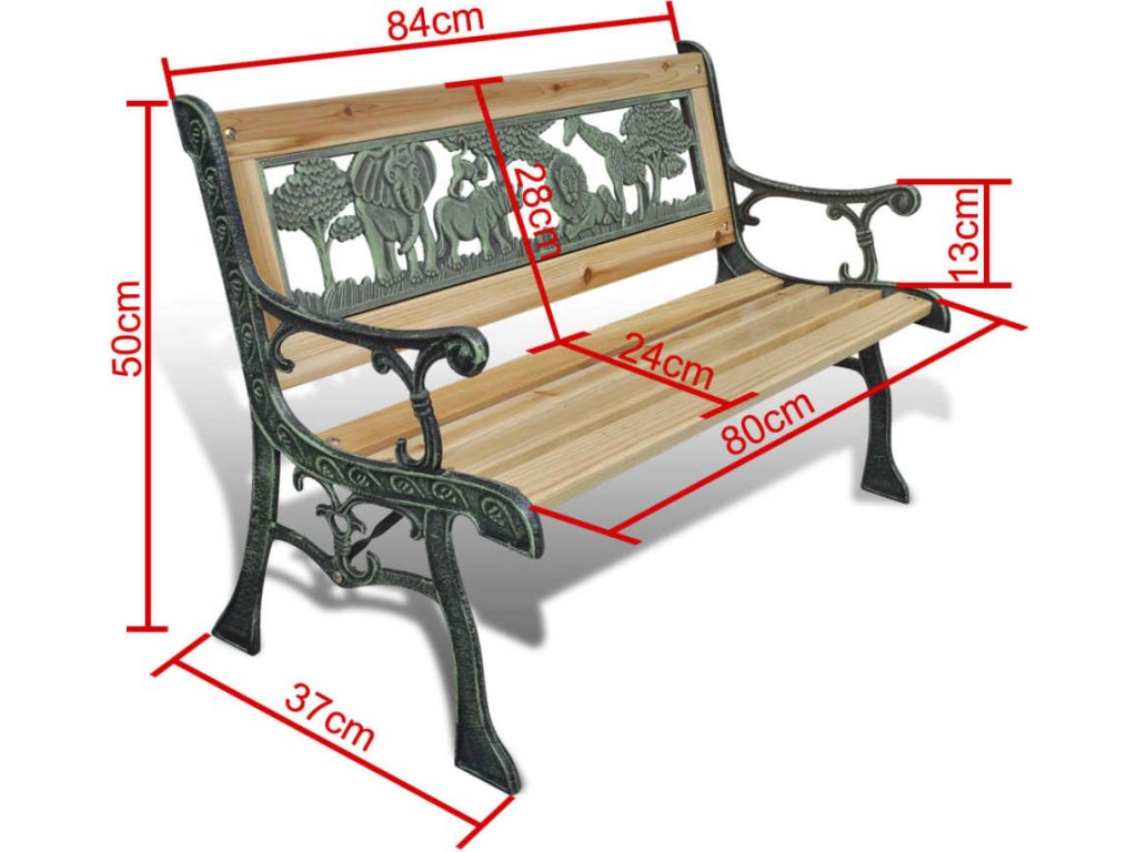 Tato domácí zahradní lavička je vzhledem ke svým rozměrům vhodná pro vaše děti. Ty si určitě budou užívat čas strávený na této roztomilé lavičce ve společnosti zvířátek a rostlin zobrazených na opěradle.